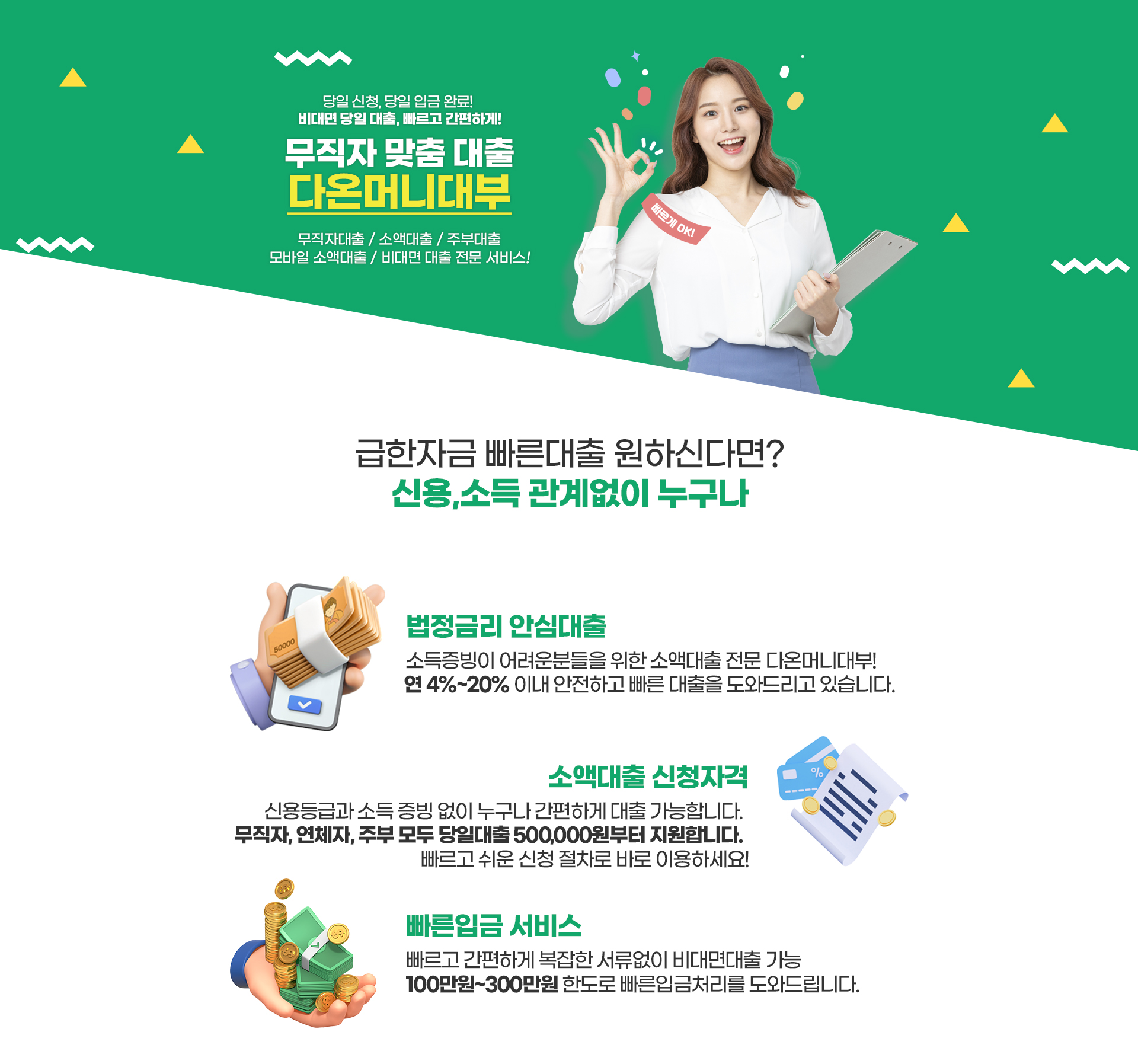 맞춤대출 다온머니대부 당일 안전하고 빠르고 간편하게!