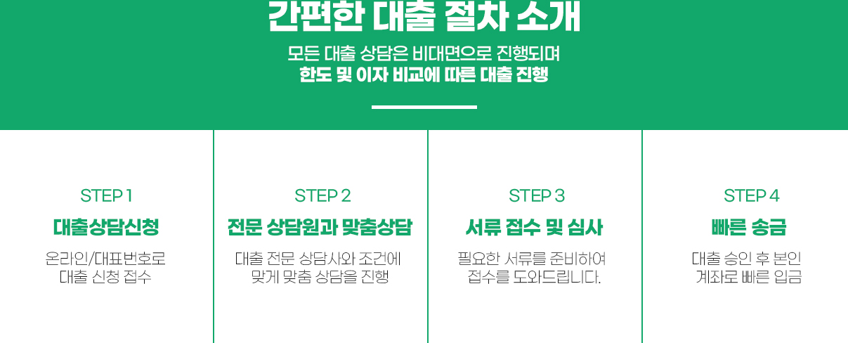 대출중개수수료 없음 중개수수료를 요구하거나 받는것은 불법으로 대출과 관련된 일체 수수료를 받지 않습니다.